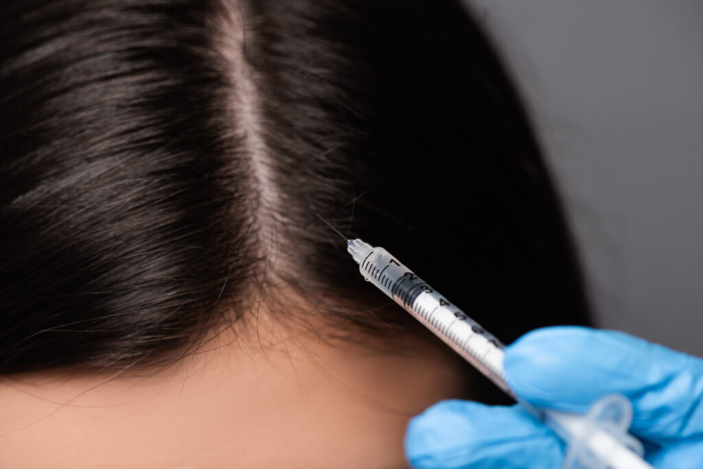 PRP injections trigger natural hair growth and maintain where the provider takes the patient’s blood, and puts it in a centrifuge to separate the platelet-rich plasma, which is then reinjected into the hair follicle to stimulate growth.